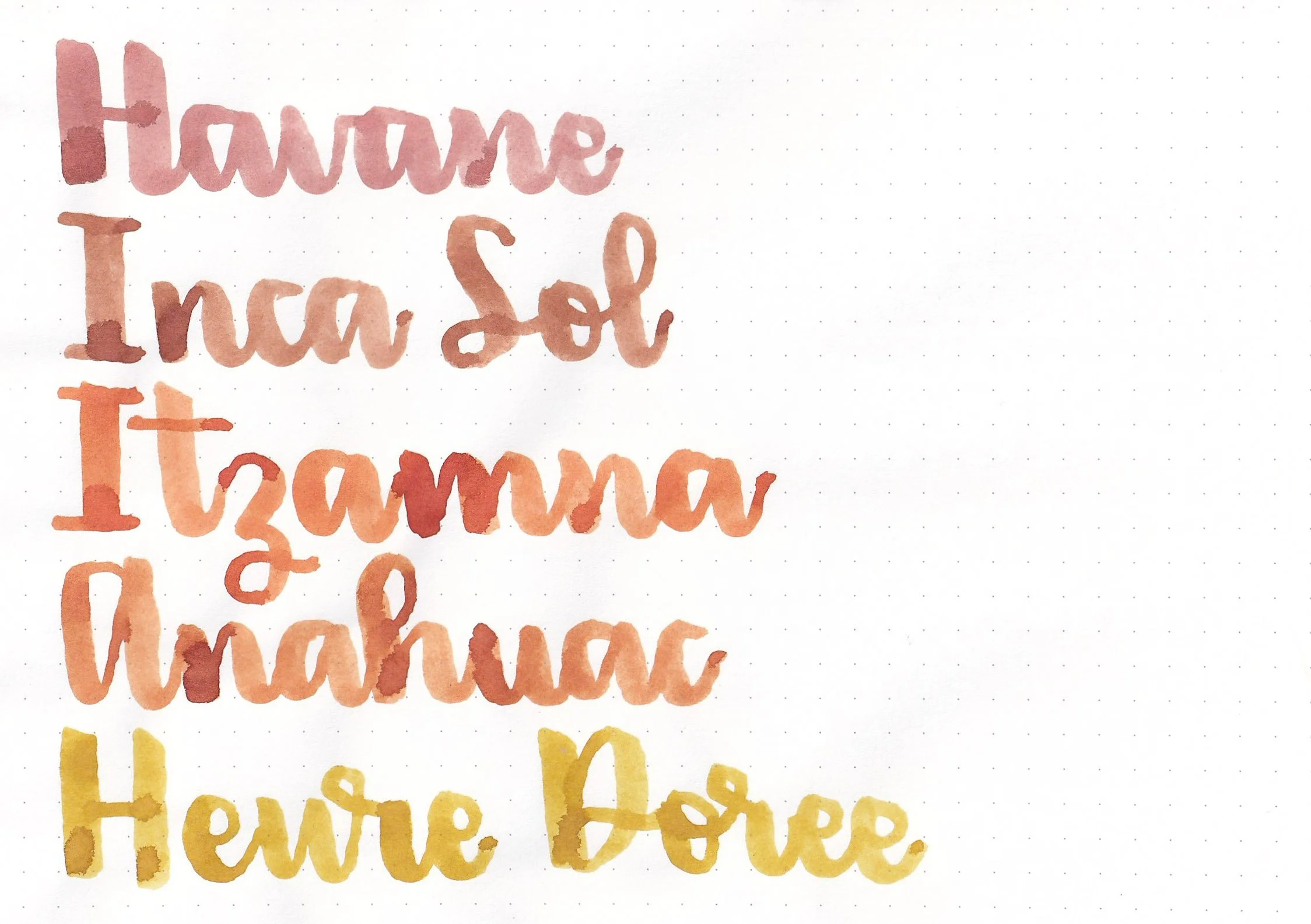 Napnyugta Sunset is lighter than Pilot Iroshizuku Yu-yake. Click here to see the orange inks together.