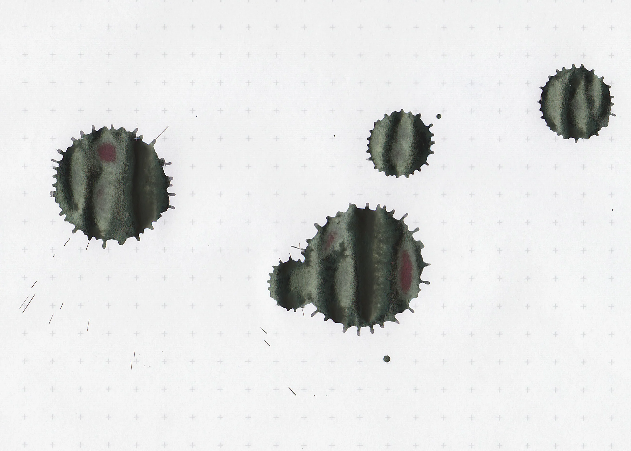 Ink swabs for comparison, left to right (top to bottom for mobile RSS): Colorverse 30 Anti-matter, Colorverse 17 Vortex Motion, and Colorverse 29 Matter. Click here to see the Colorverse inks together.