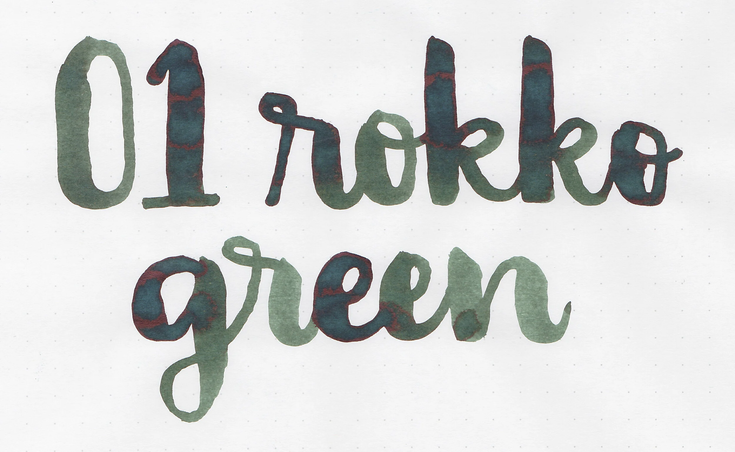 Rokko Green looks like a darker version of Sailor Jentle Epinard. Click here to see the Kobe inks together, and click here to see the green inks together.