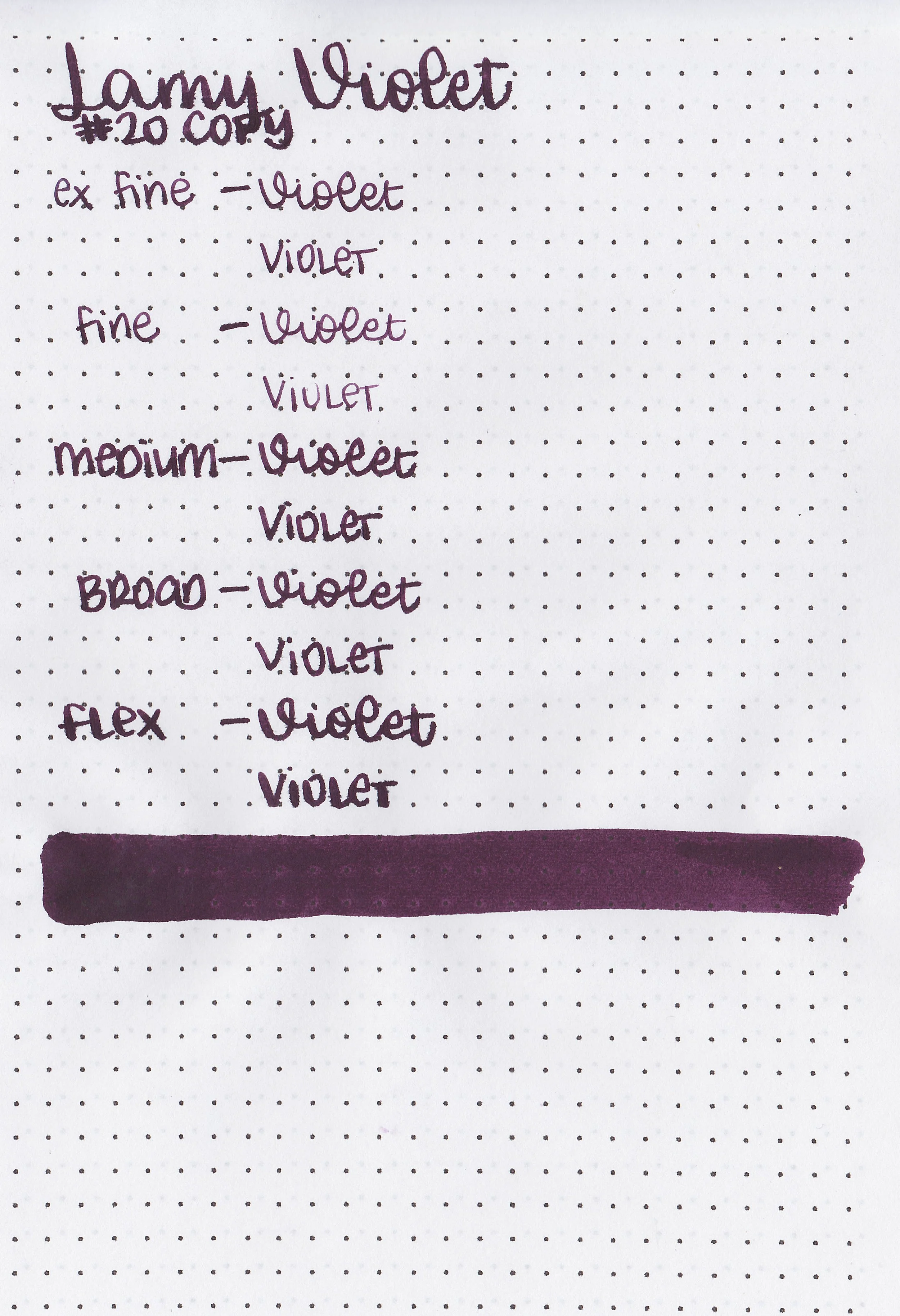 I used a Lamy Safari Violet with a medium nib on a Taroko Enigma notebook. The ink has a slightly wet flow.