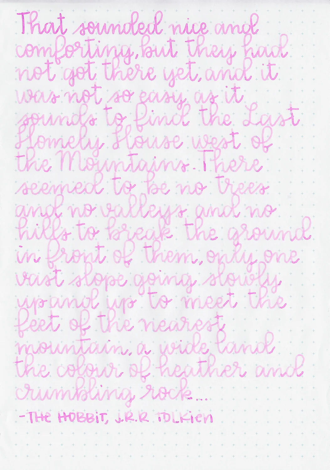 Overall, the ink is a bit too light in writing, and a bit too dry for me. It's not a bad color, just not the most practical for everyday use.