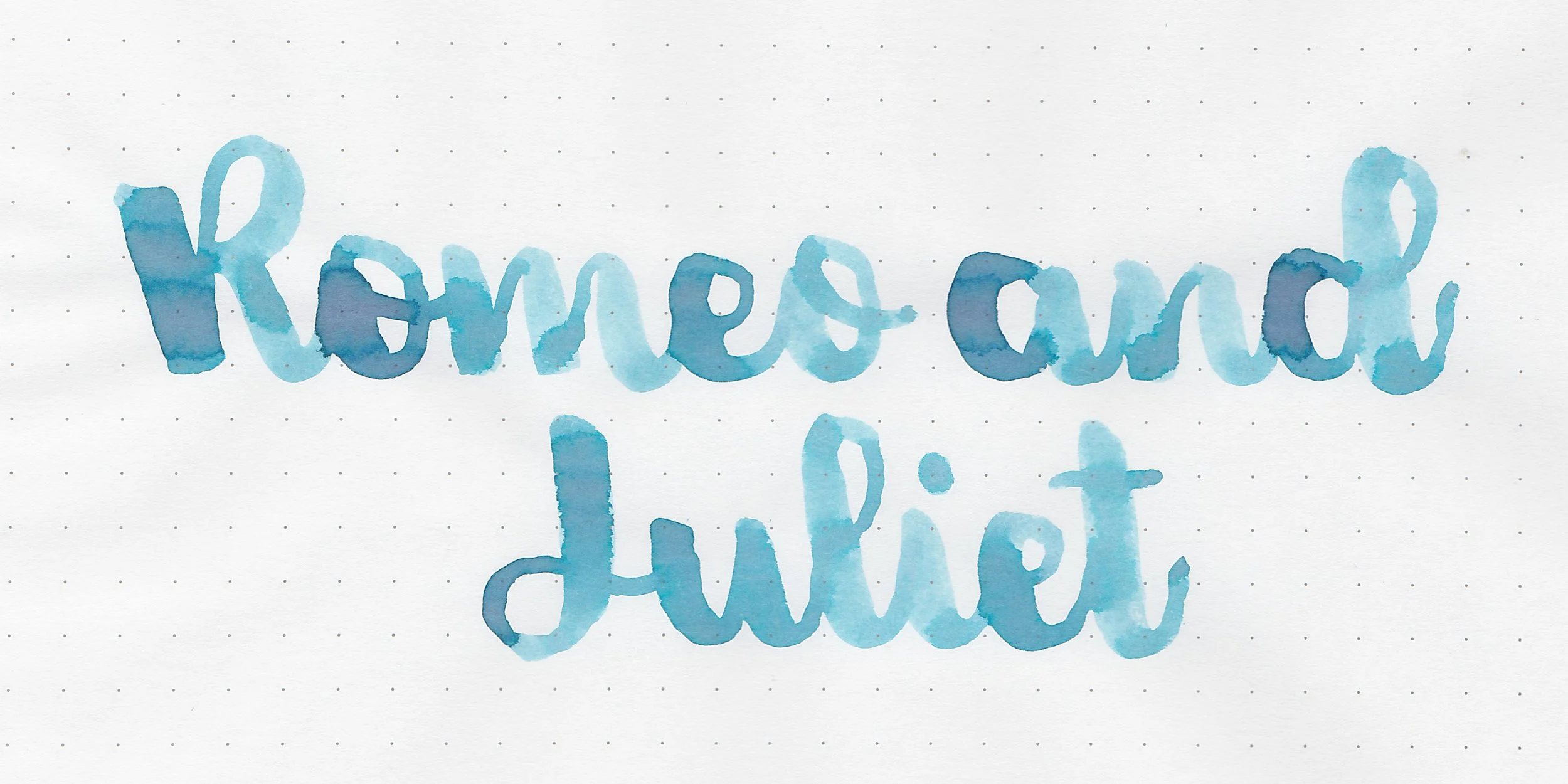 Romeo & Juliet is lighter than Colorverse Leodo and brighter than Vinta Lucia. Click here to see the blue inks together.