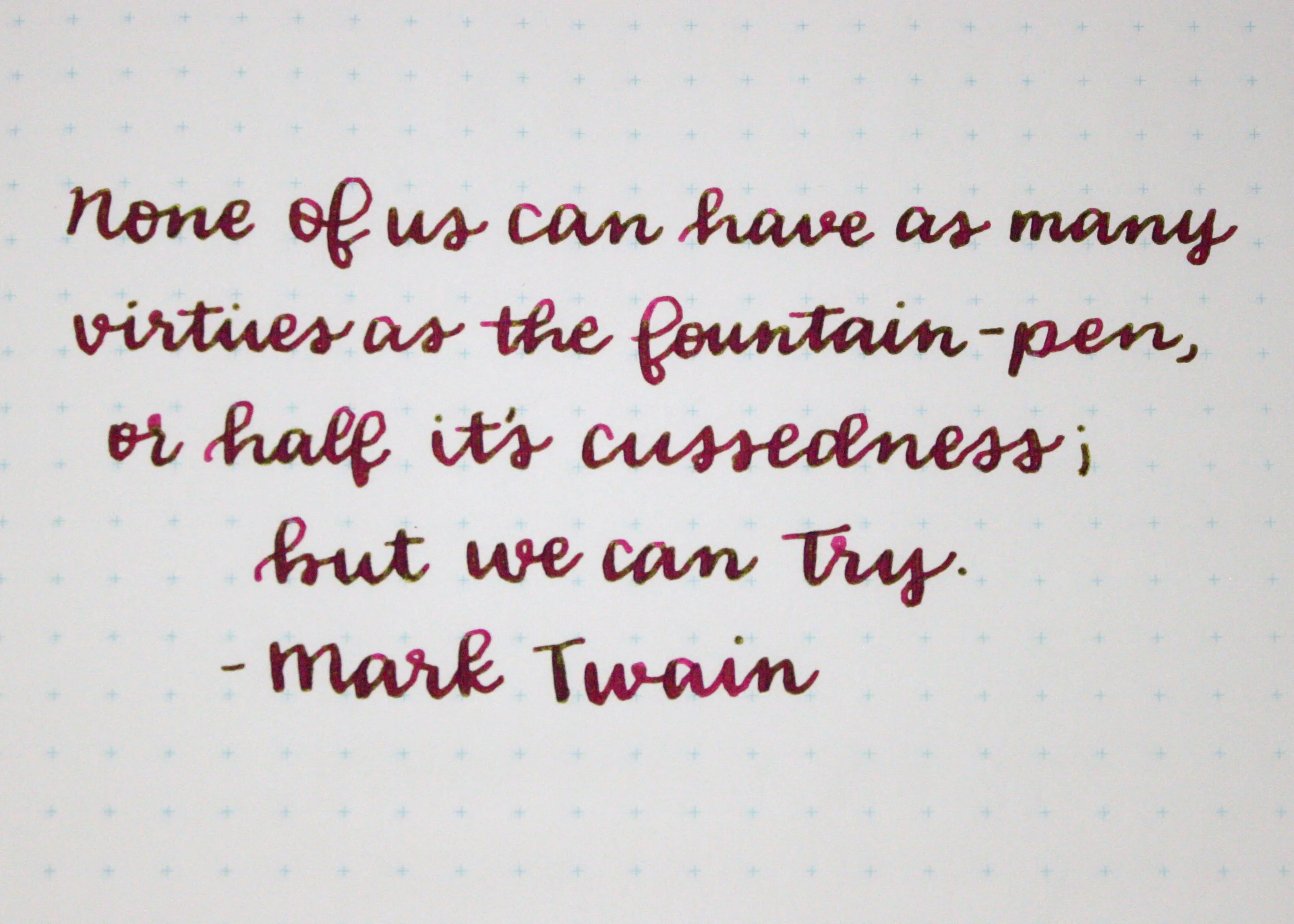 This quote was done on Tomoe River paper with a Noodler's Ahab. There is a lot of sheen, but it's hard to capture on camera.