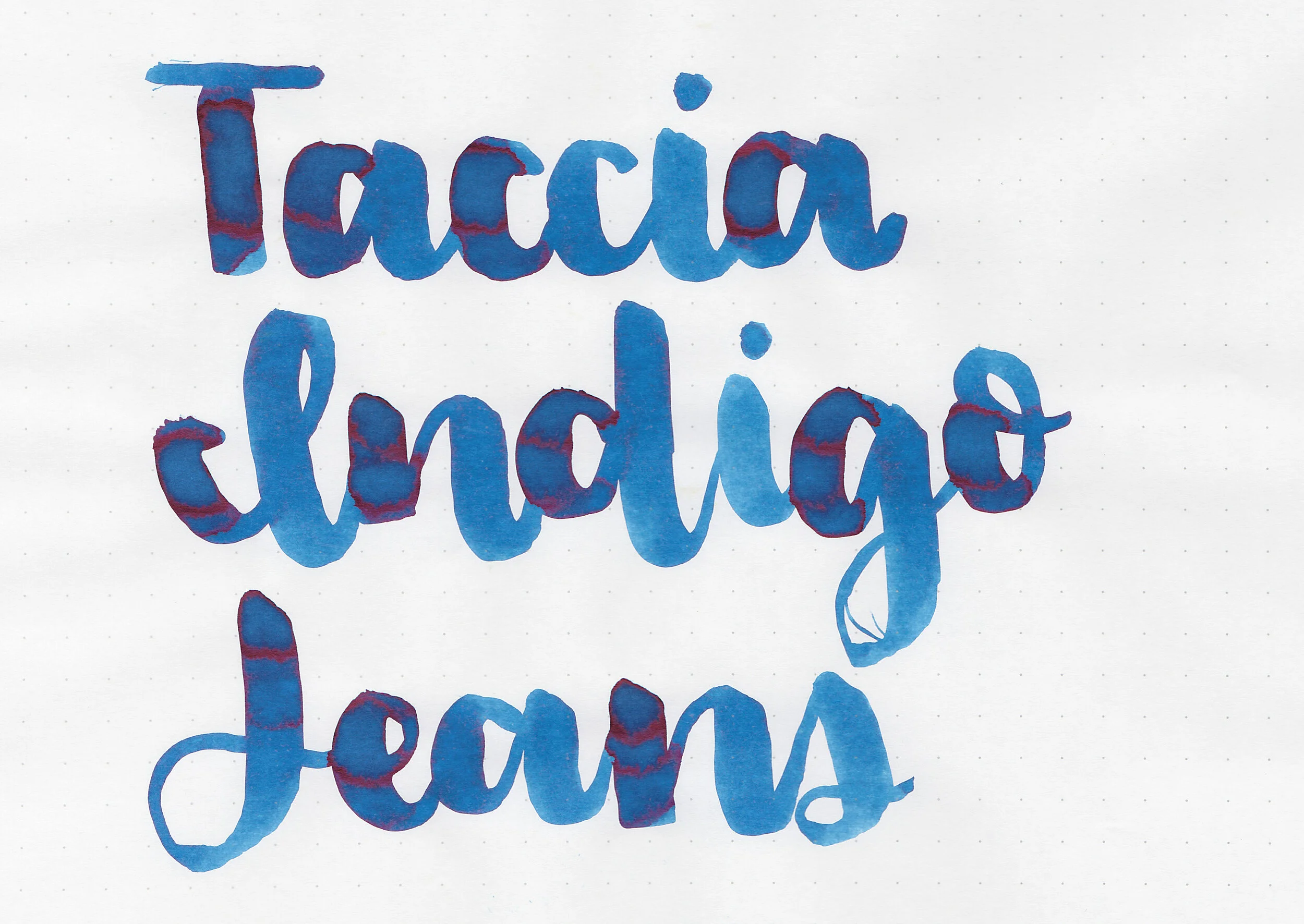 Indigo Jeans is darker than Birmingham Cornflower but lighter than Sailor Ink Studio 840. Click here to see the Taccia inks together and click here to see the blue inks together.