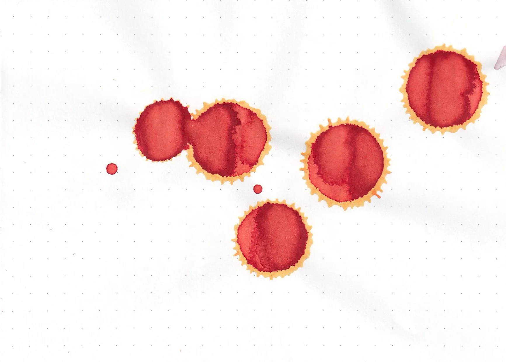 In large swabs on Tomoe River paper the ink is more red where it pooled.